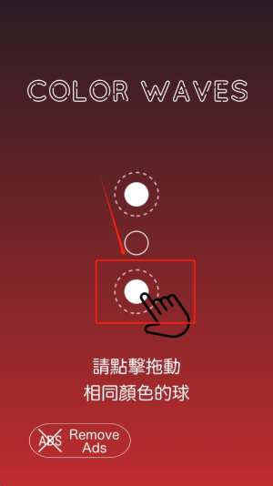2、开始游戏:在“COLOR WAVES”界面,按住并拖动相同颜色的球进行消除,点击“Remove Ads”可关闭广告。