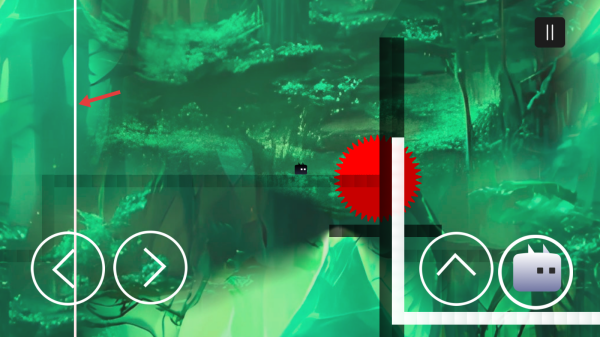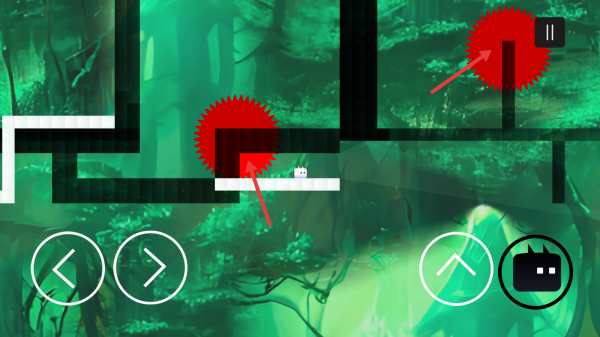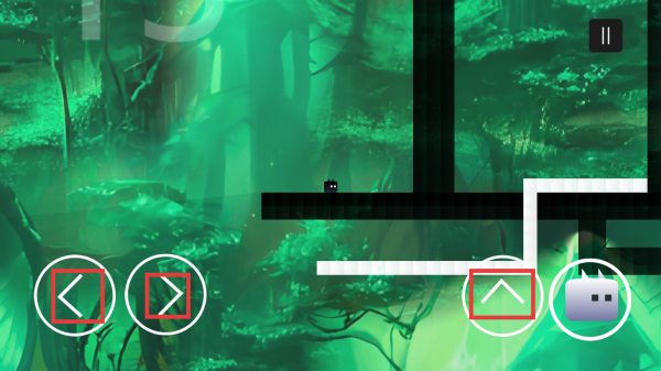 1、熟悉左下角【←】【→】和右下角【↑】按键功能,用于控制角色移动和跳跃,多练习掌握操作手感。