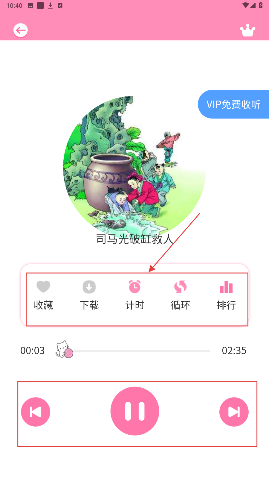3、在故事播放页面,可使用【收藏】【下载】等功能,还可设置播放模式。