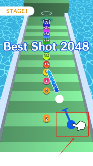 3、在合成出 2048 数字的小球后,需精准击打使其进入球洞,完成这一关键步骤才算通关,考验最后一击的准确性。