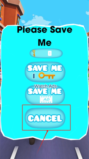 4、选择救援:当“SAVE ME”界面弹出,点击“Watch Ads”获得一次救援机会,或点击“CANCEL”放弃并重新开始。