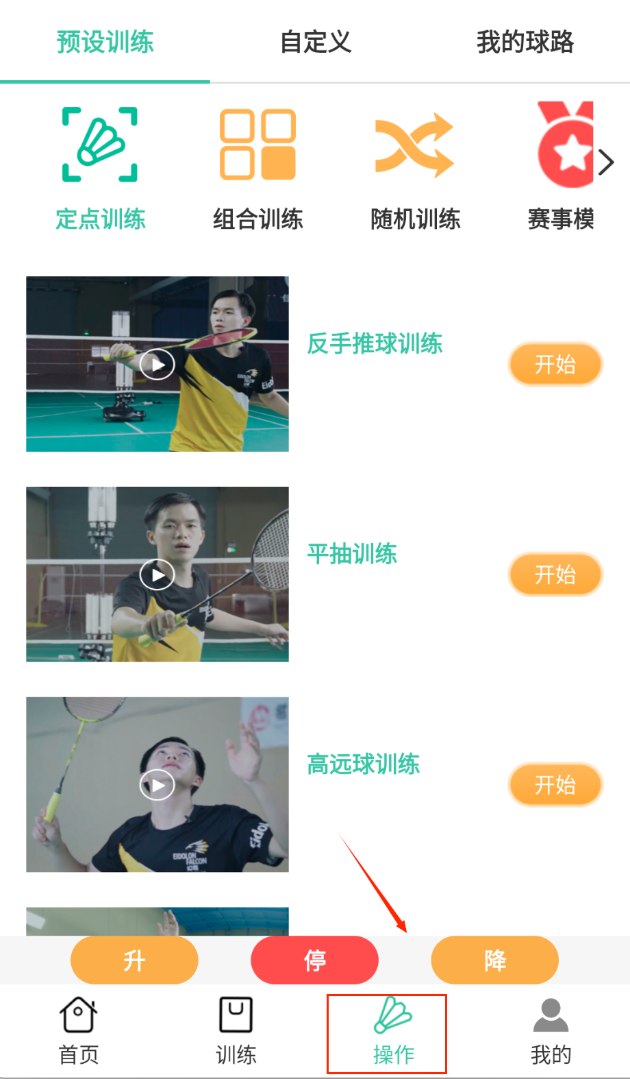 2、训练页选择预设模式或自定义球路,设置速度/角度/旋转等参数,保存个人配置啦。
