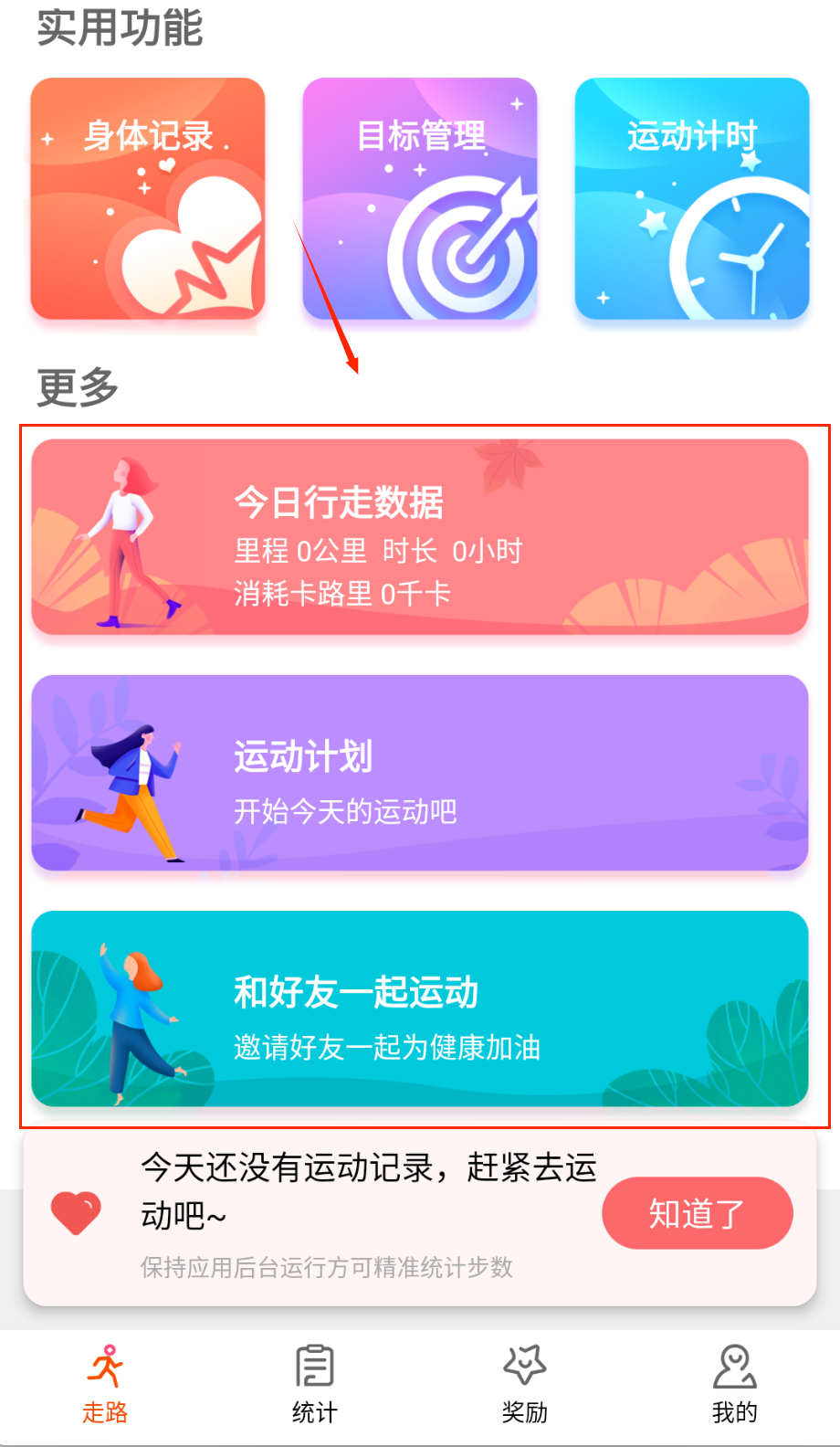 2、运动页选择跑步/健走等模式,实时查看步数统计,达成阶段目标获取额外金币啦。