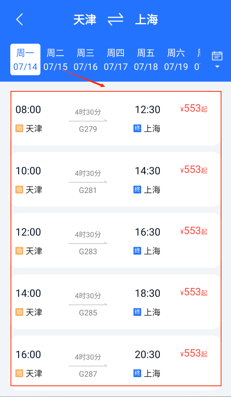 1、首页选择"高铁"或"机票"标签,输入出发地和目的地,设置出行日期筛选合适班次哦。