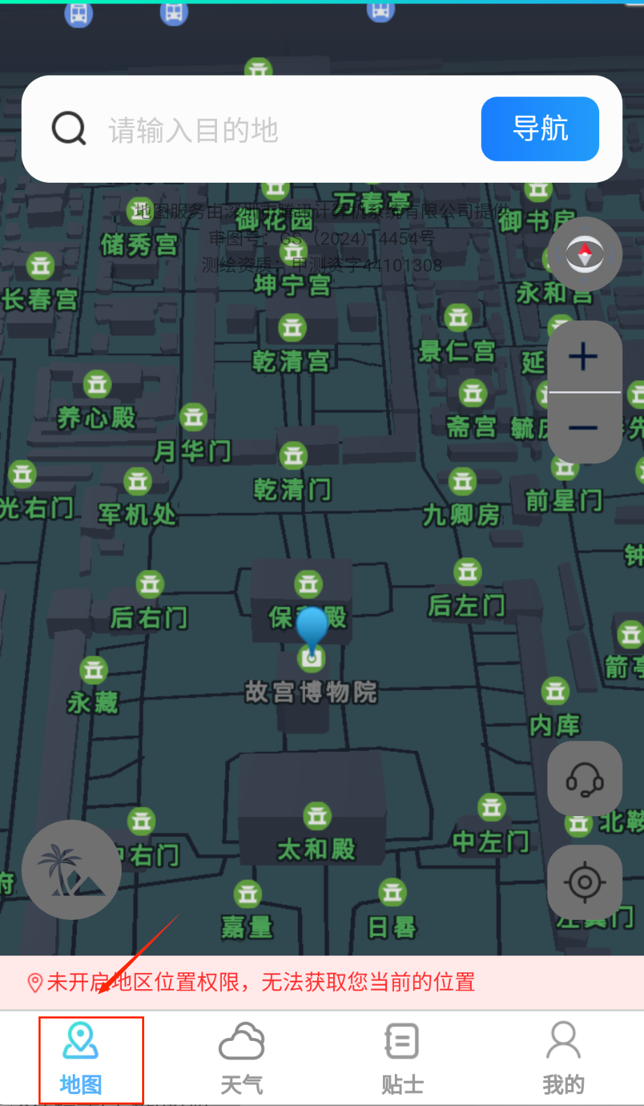 2、地图页双指缩放调整视角,点击建筑查看详情,收藏特色地点,分享当前位置给好友啦。