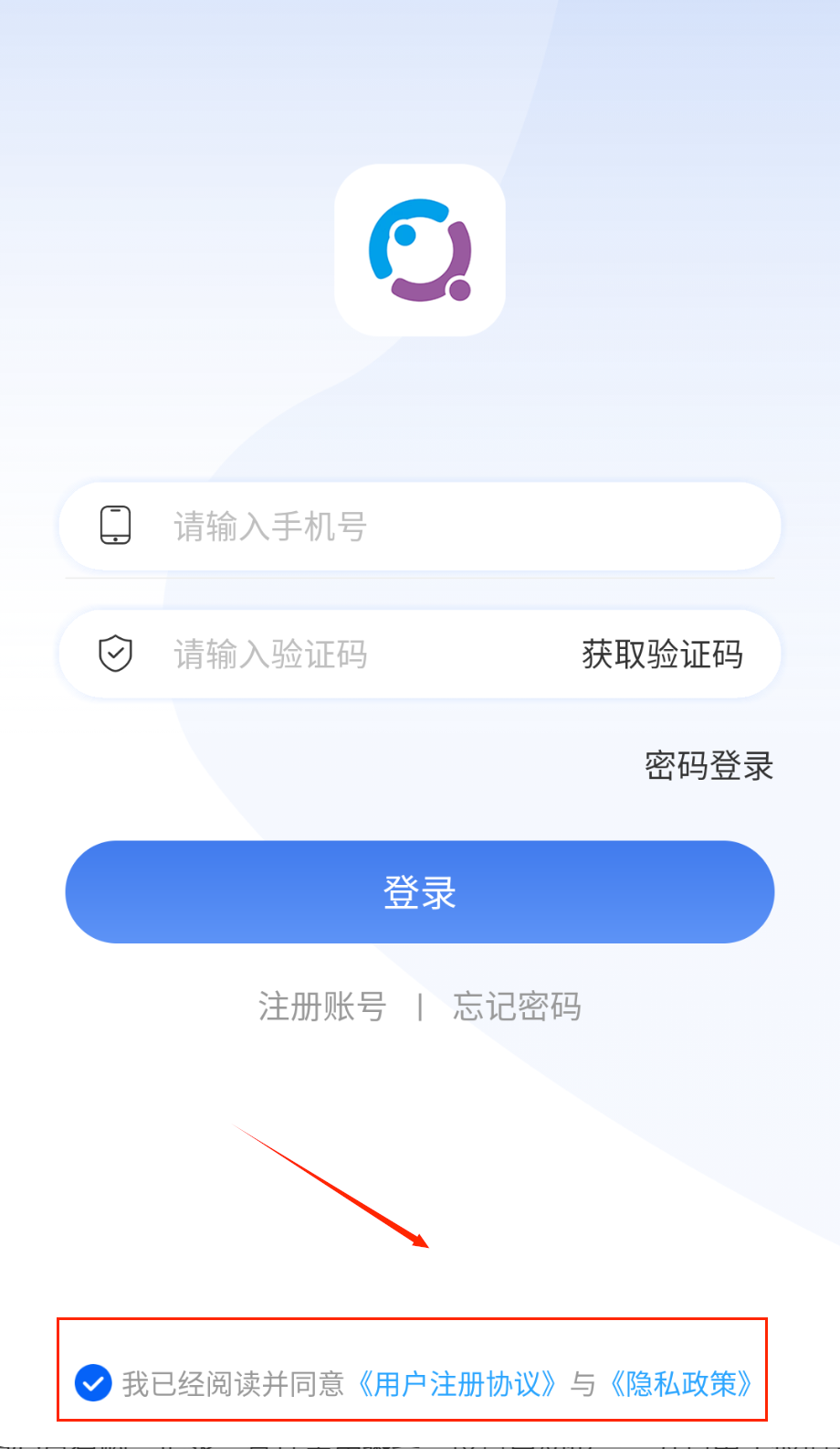 3、记得勾选底部协议选项,这是必须的操作步骤,否则无法进行注册或登录哦。