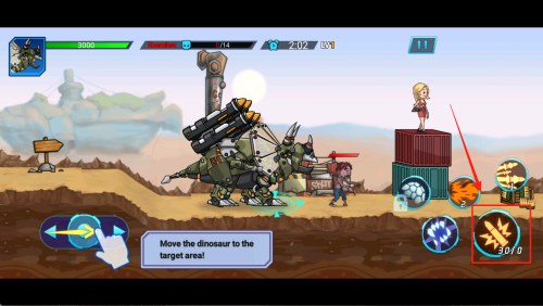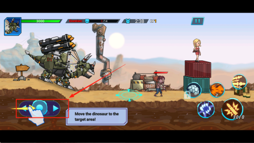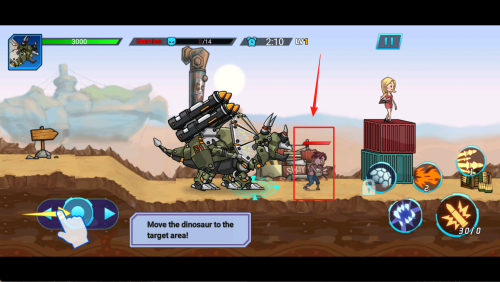3、继续拖动恐龙,沿直线滑向新的目标区后松手。