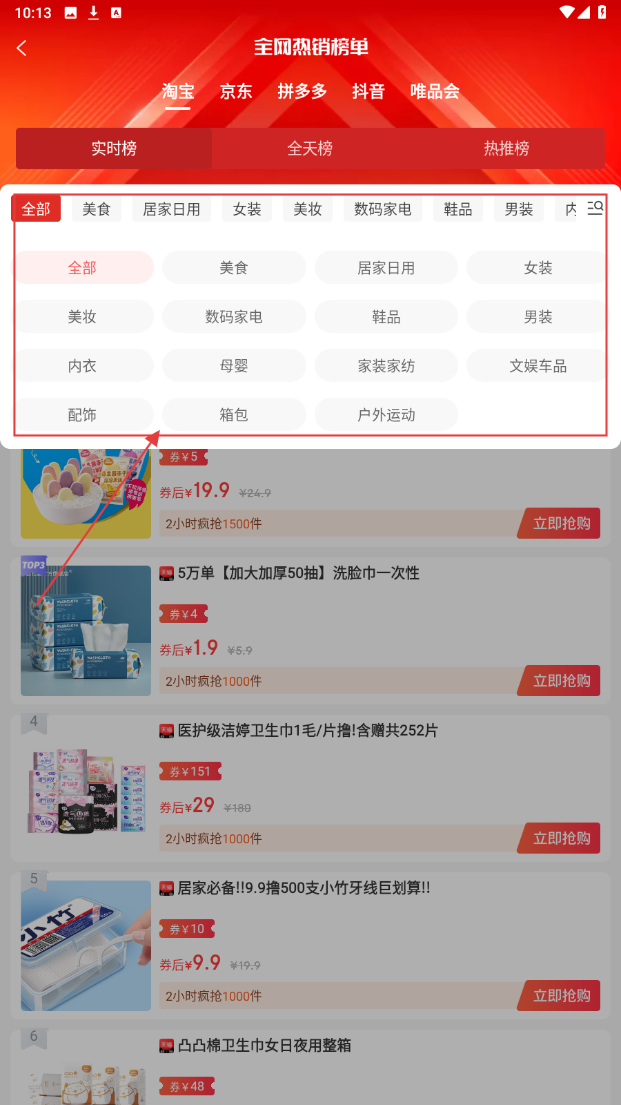 2、进入【全国热销榜单】页面,可以点击分类右侧的小图标进行展开。