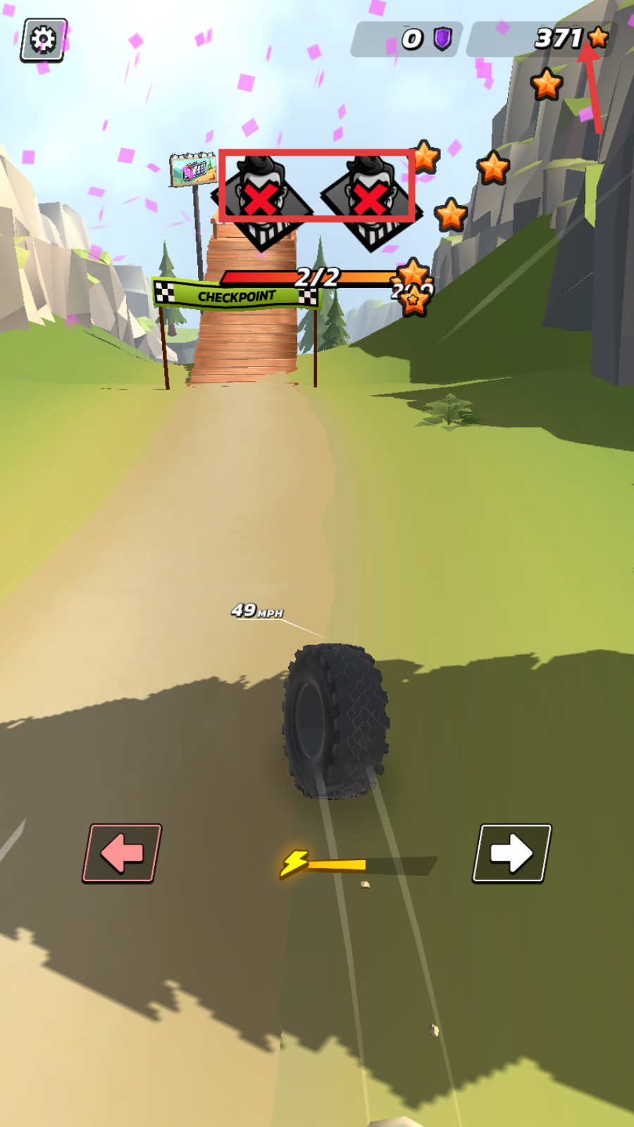 2、车辆升级系统:运用赛道奖励资金提升移动距离基础数值与惯性属性,每项增强直接影响通过复杂地形能力需合理分配资源。