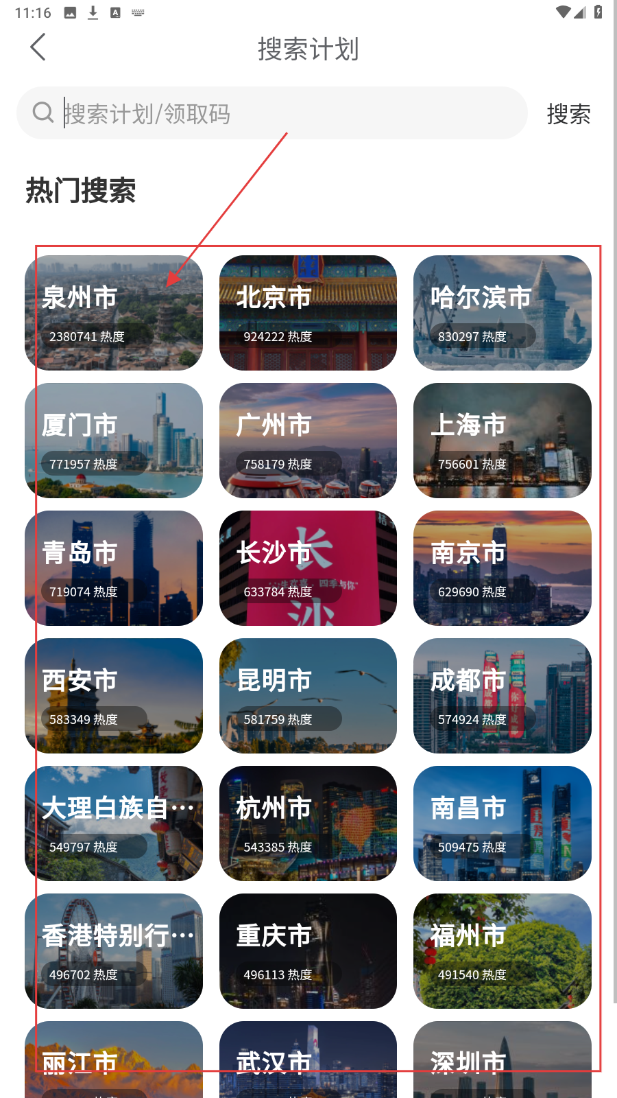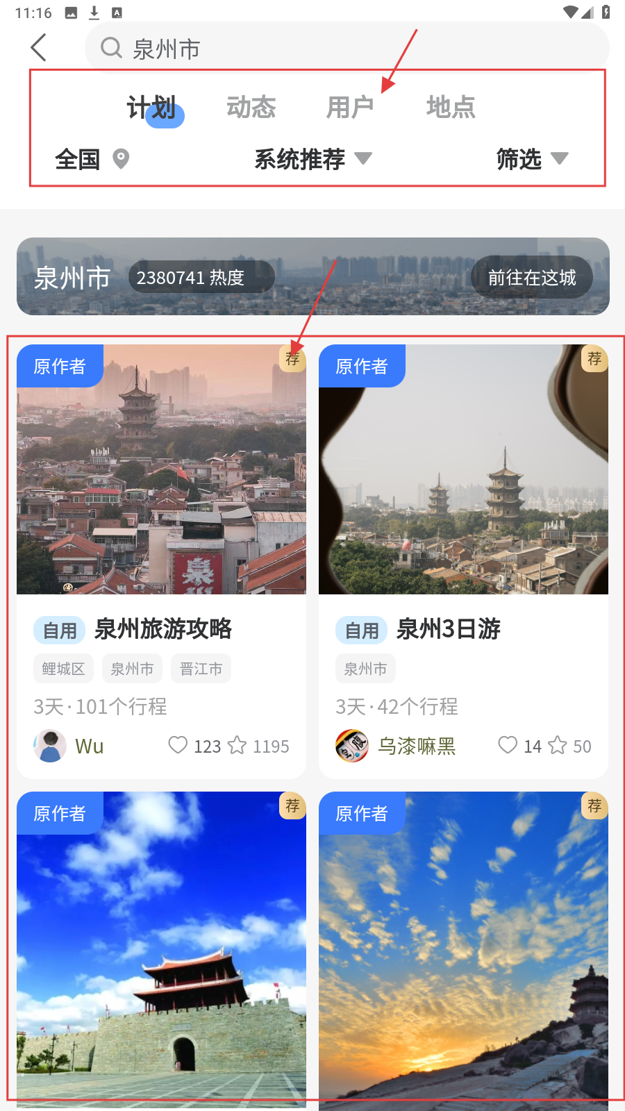 2、在搜索页面中,选择感兴趣的城市,如【泉州市】,查看该城市的旅游攻略。