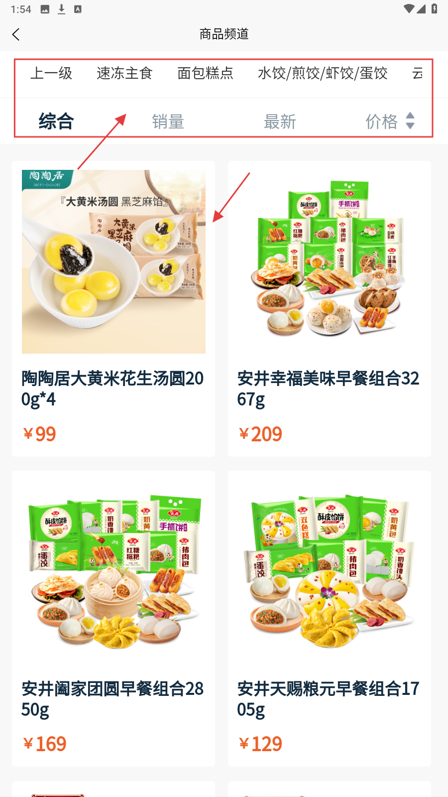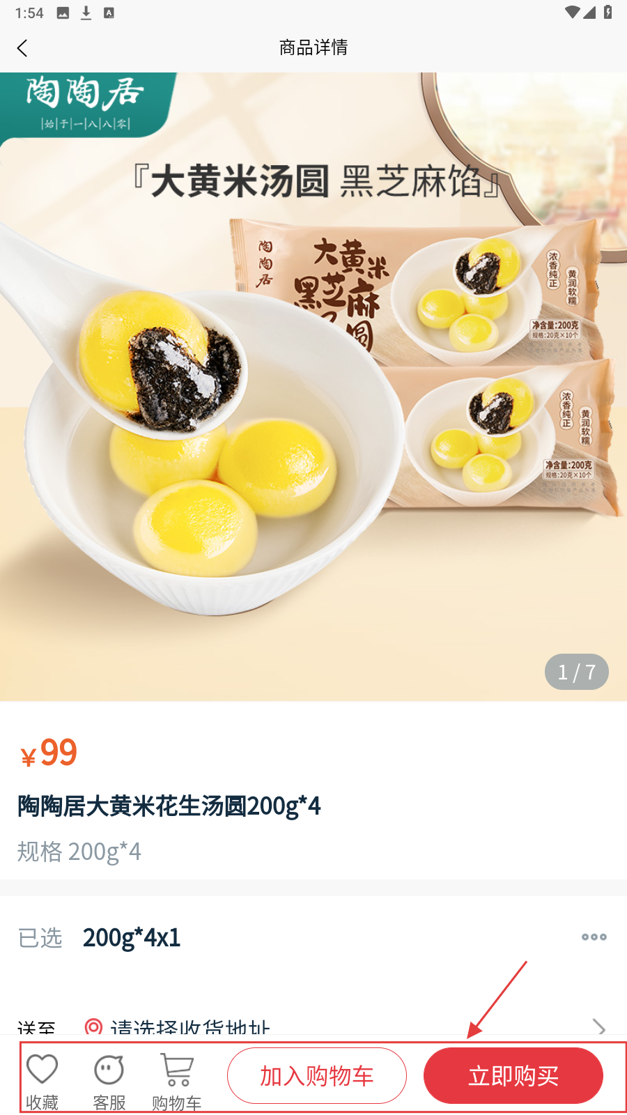 3、在【早点主食】页面中,选择感兴趣的商品,如【陶陶居大黄米花生汤圆200g*4】,查看商品详情。