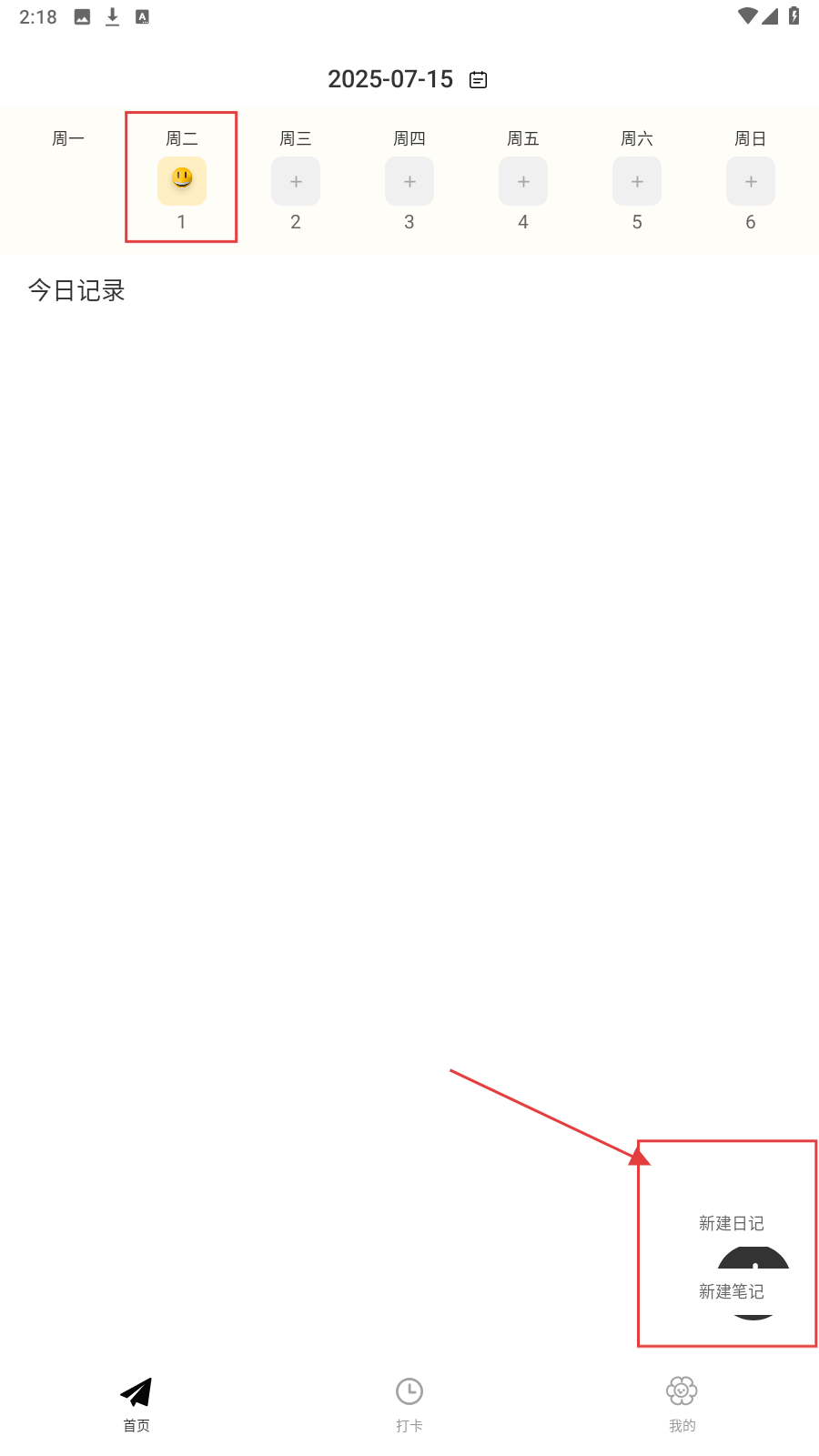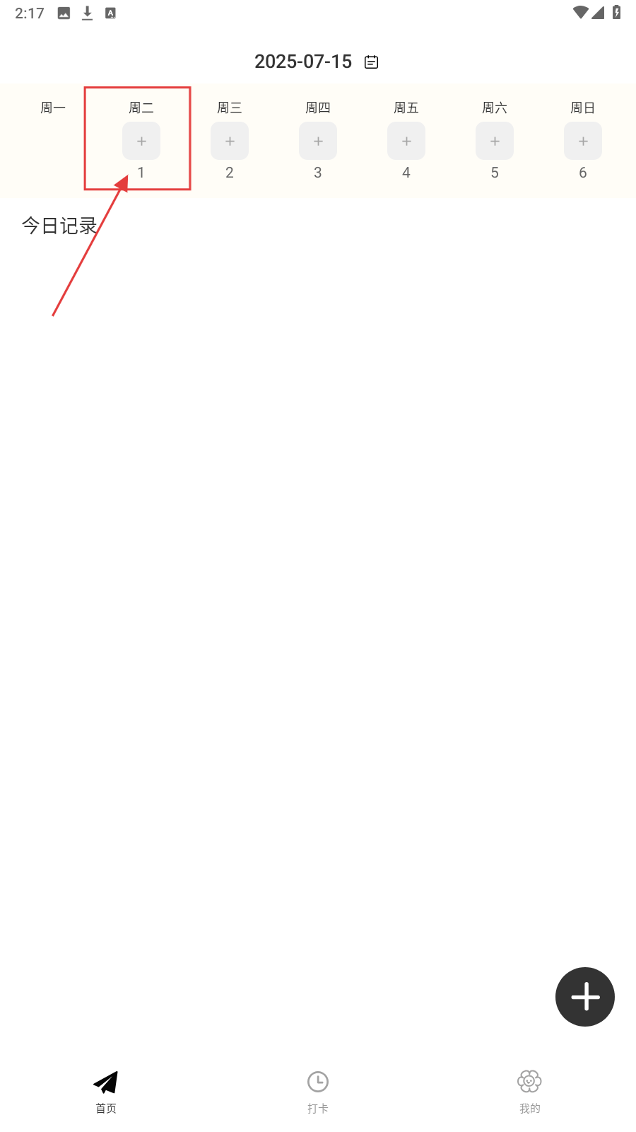 1、进入应用后,点击日期选择框,选择要记录的日期,如【周二-1】。