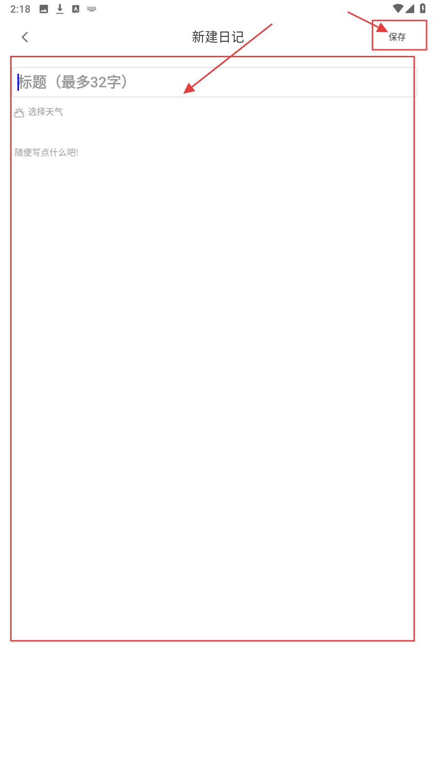 4、在日记编辑页面中,填写日记标题和内容,点击【保存】按钮,完成日记记录。