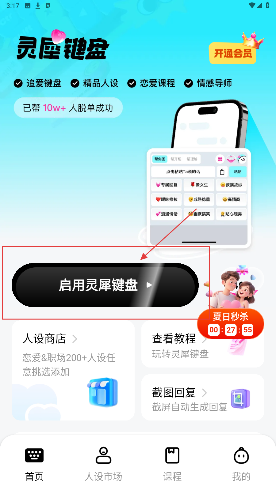 1、进入应用后,点击【启用灵犀键盘】按钮,进入输入法设置页面。