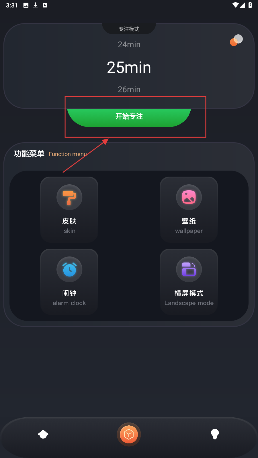 1、进入应用后,点击【开始专注】按钮,进入专注模式设置页面。