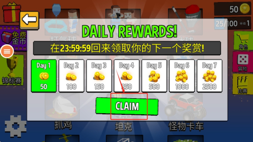 1、点击“CLAIM”按钮领取每日奖励,积累金币资源。