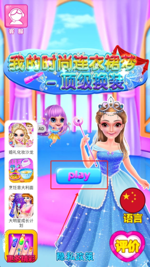 1、点击“PLAY”按钮进入游戏,开始你的时尚之旅。