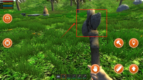4、收集关键资源,如木材,点击屏幕中的物体进行互动,以制作工具和建造庇护所。