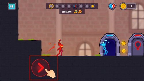 1、控制冰与火火柴人在关卡中移动,冰火柴人避开火焰区域,火火柴人远离寒冰地带,利用各自特性触碰对应机关,打开前进道路。