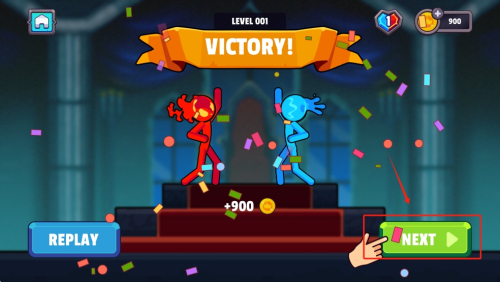 4、最后,完成关卡后点击“NEXT”按钮进入下一关,或点击“REPLAY”重新挑战当前关卡。