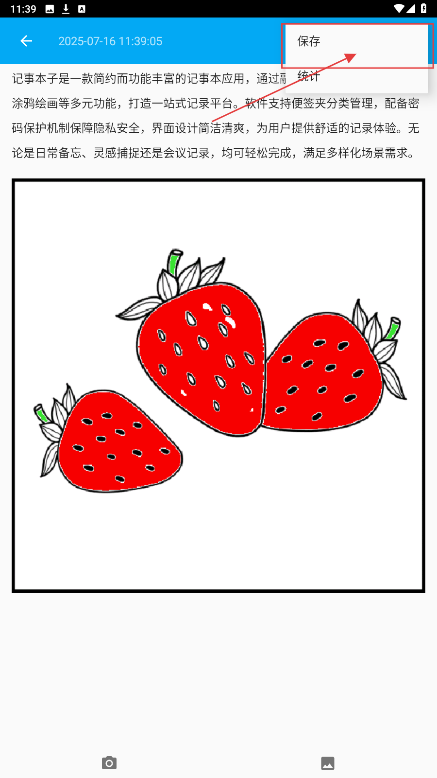 4、在更多选项菜单中,点击【保存】按钮,保存便签内容。
