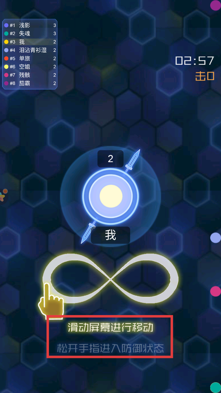 1、牢记【滑动屏幕进行移动】【松开手指进入防御状态】操作,灵活走位躲避敌人攻击。