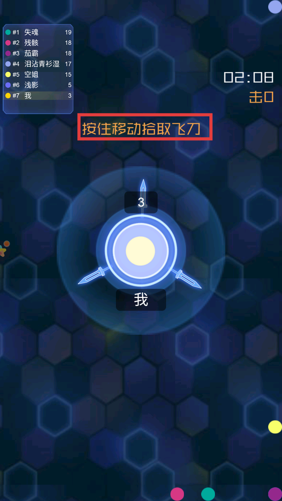 2、依据提示【按住移动拾取飞刀】,不断收集飞刀,增强自身攻击能力。