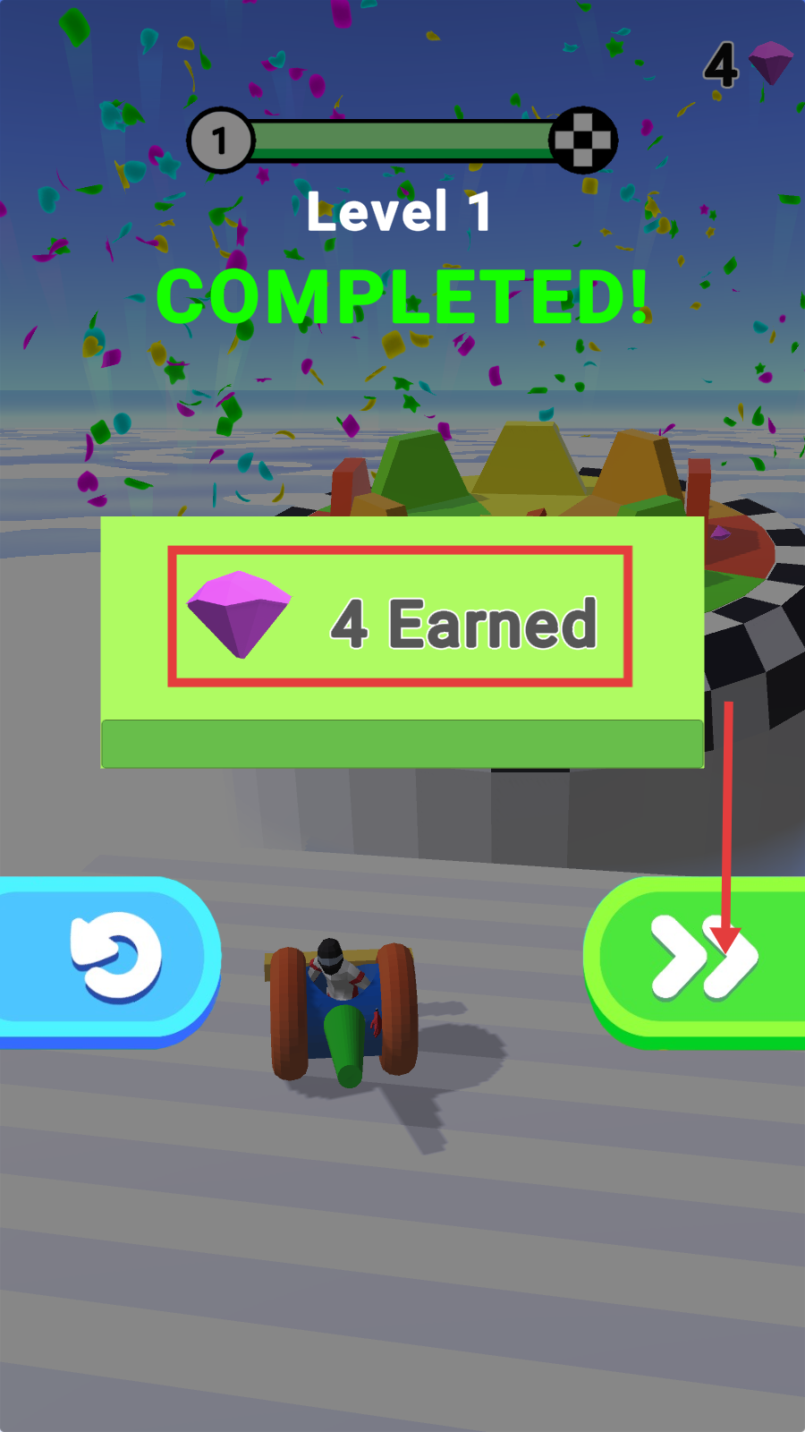 4、成功通过关卡,获得钻石奖励后,可点击绿色按钮进入下一关。