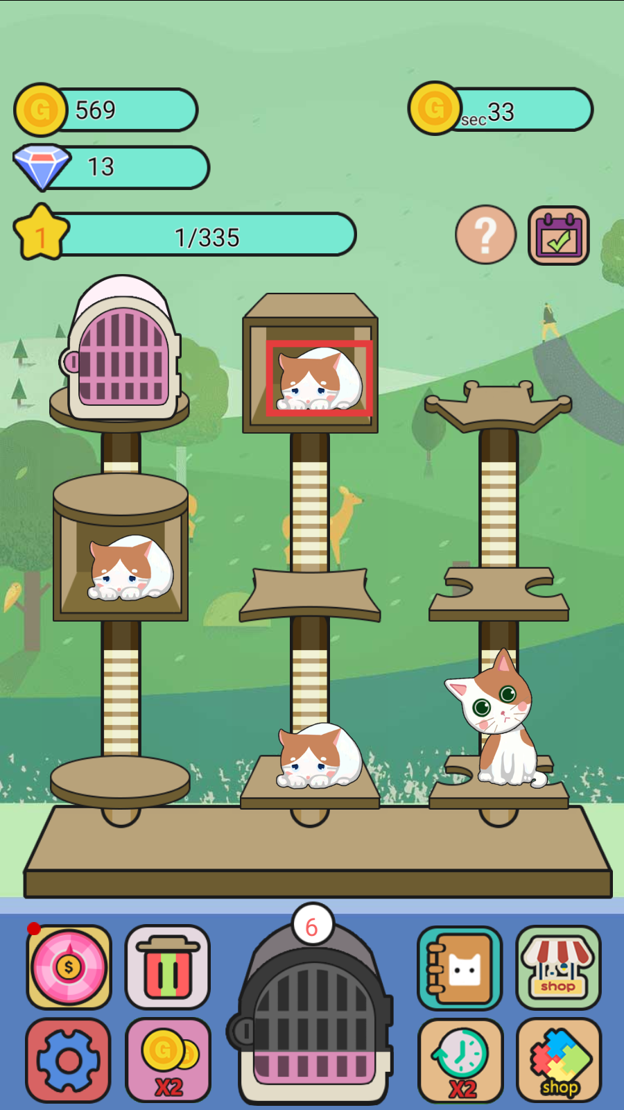 2、点击系统送的粉色笼子,可以开出初级的小猫,后续的合成升级需要大量的初级小猫。