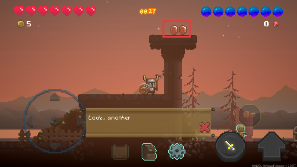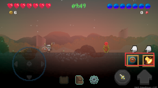 3、遇到敌人时,根据情况灵活使用右下角的【盾牌】和【攻击】技能键,保证自身血量,避免过多损耗红心。