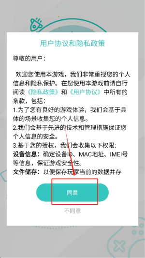 1、点击“同意”按钮,接受用户协议和隐私政策。
