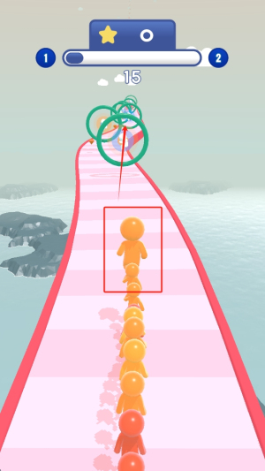4、向终点冲刺时,利用增大的体积撞开剩余障碍,冲线时的体积越大,获得的分数越高,挑战高分记录,解锁新的关卡和果冻人皮肤。