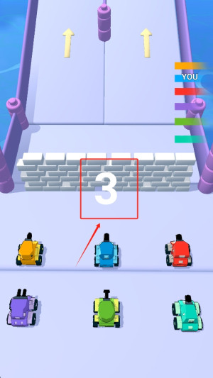 1、选择你的赛车并准备开始比赛,注意观察赛道上的数字提示,了解当前排名。