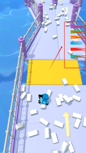3、收集道具可助力赢得比赛,道具从加速 buff 到防御护盾,功能各异,合理使用能逆转局势,为闯关增添策略性与变数。