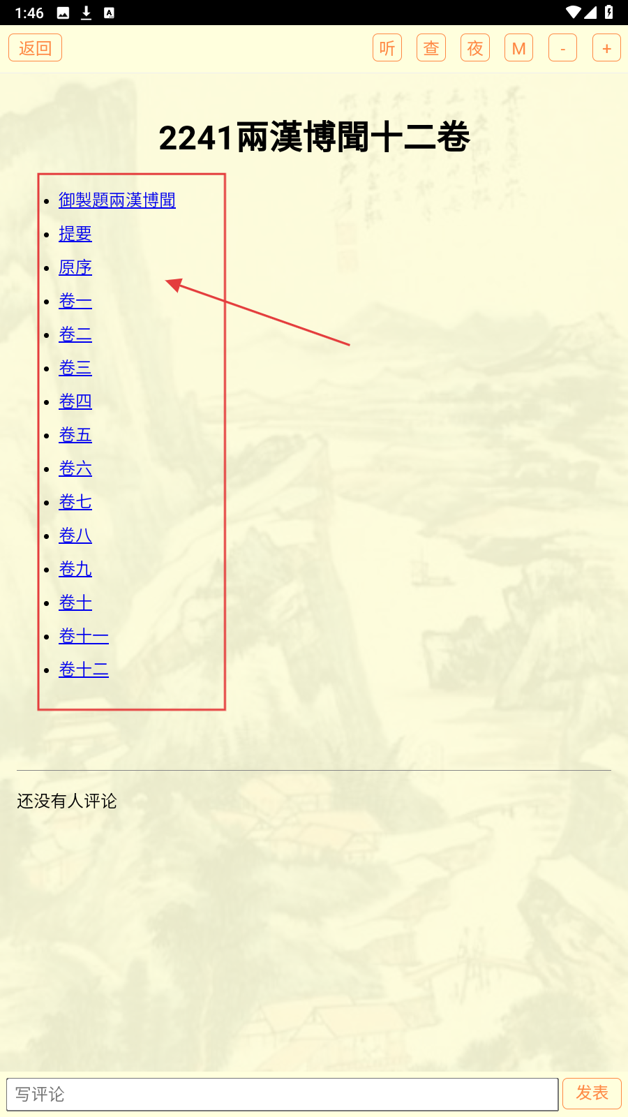 3、选择心仪的古籍书籍,点击进入书籍详情页,可查看书籍的目录,选择具体章节进行阅读。