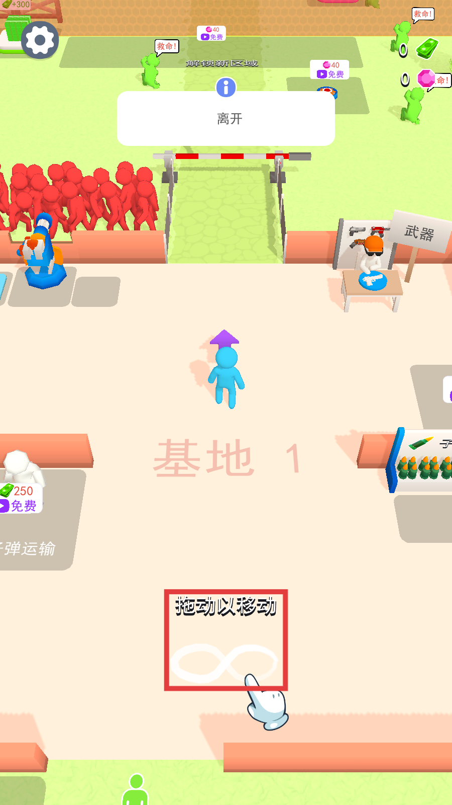 1、开局熟悉【拖动以移动】操作,掌控角色移动,方便后续探索基地1区域。
