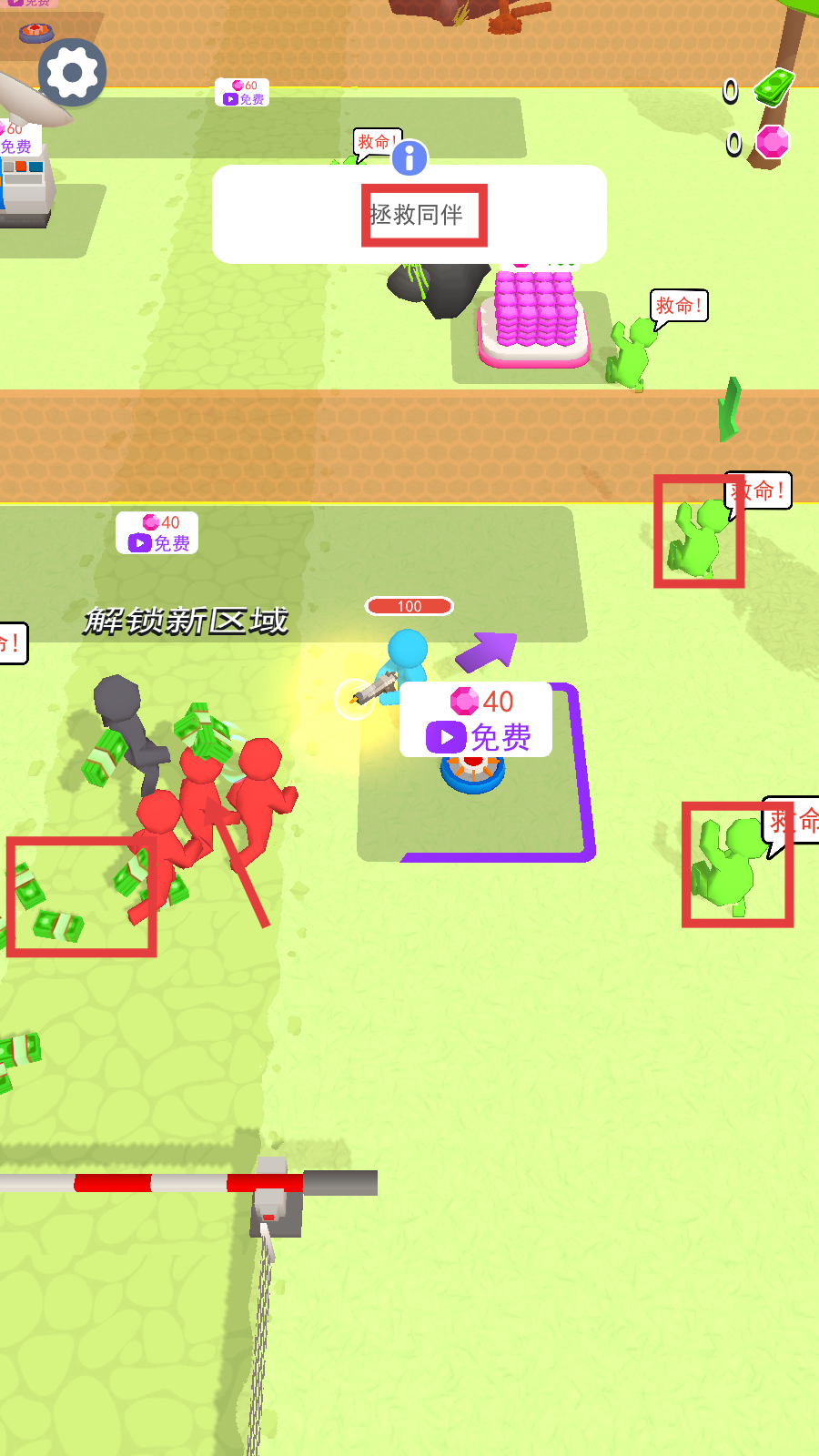2、留意呼救的【绿色角色】,优先执行【拯救同伴】任务,扩充队伍力量。