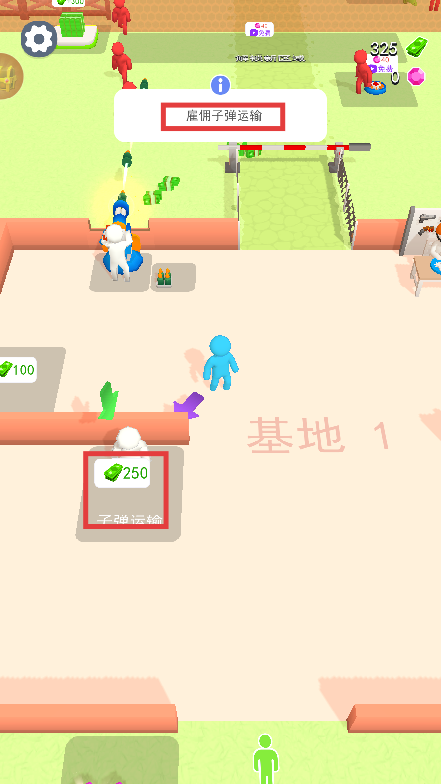 3、积累资金后,花费【250】金币雇佣【子弹运输】,保障战斗弹药补给。