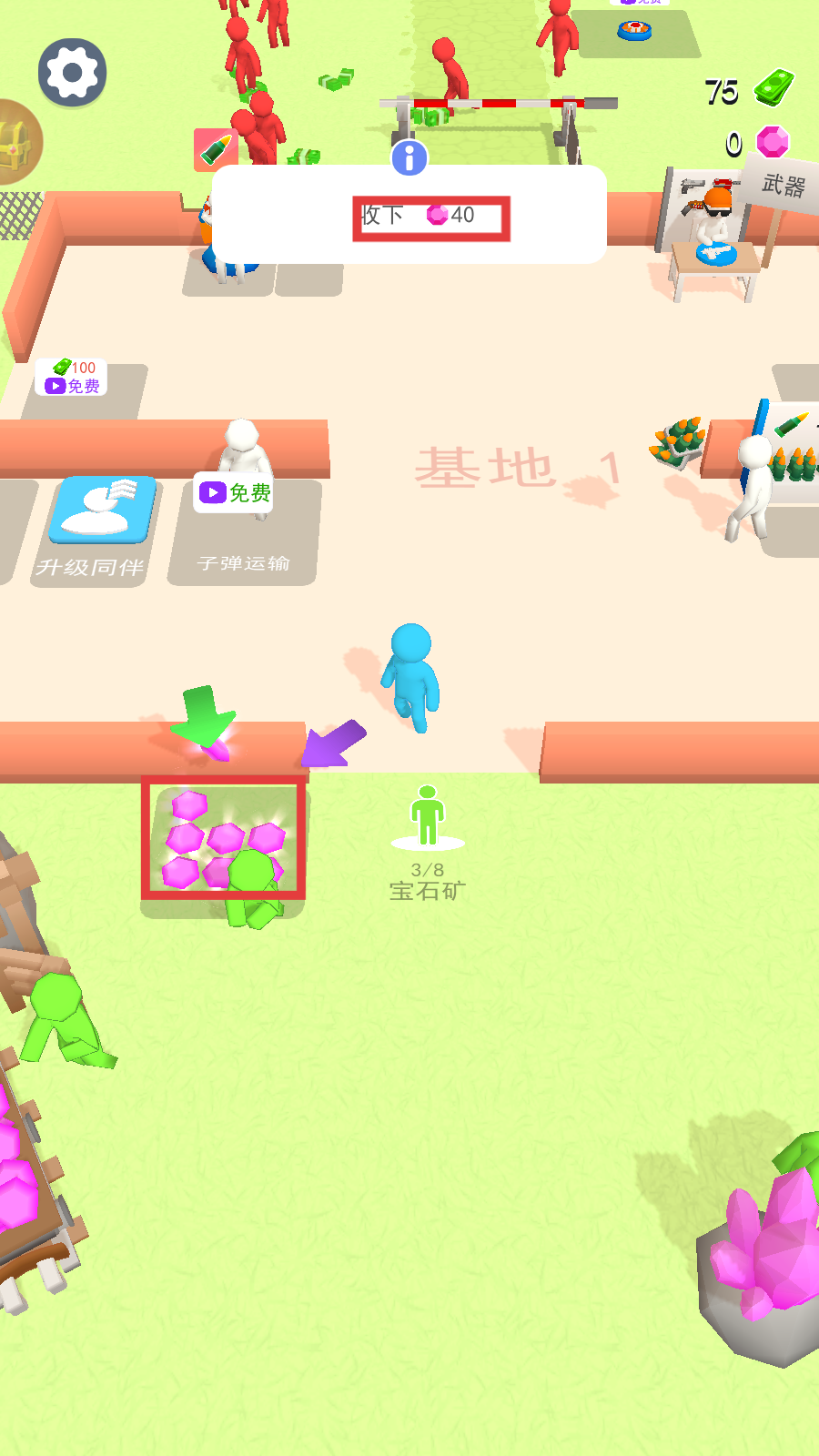 4、看到【宝石矿-3/8】等资源点,及时收取【40】宝石,储备资源提升实力。