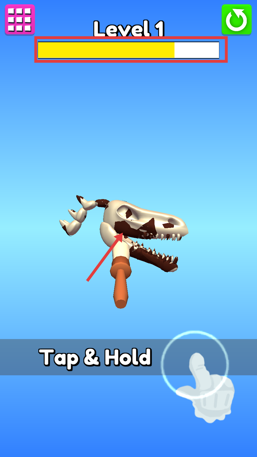 1、开局谨记【Tap-&-Hold】操作,长按屏幕开启游戏进程,推动关卡发展。