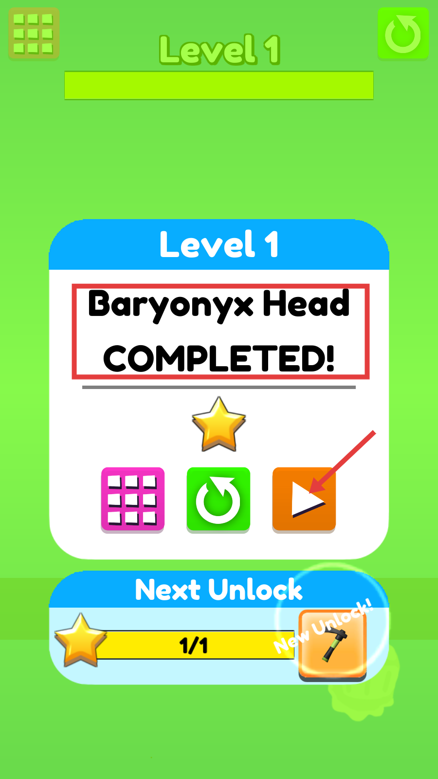 4、关卡完成后,点击橙色播放按钮继续推进,积累星星解锁【Next-Unlock】新道具。