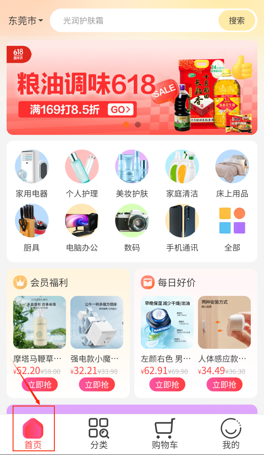 1、打开APP浏览首页推荐商品,通过分类筛选或搜索框查找目标商品,查看详细图文介绍哦。