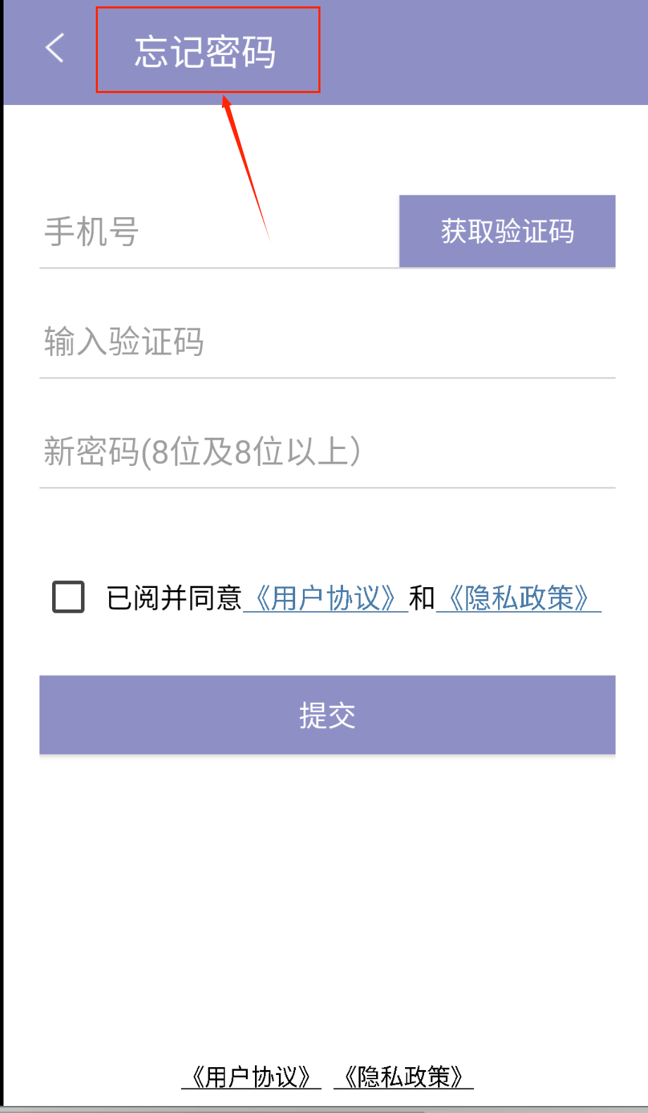 1、打开APP进入登录页,点击"忘记密码"跳转至找回页面,输入注册手机号获取验证码,设置8位以上新密码要包含字母数字呀。