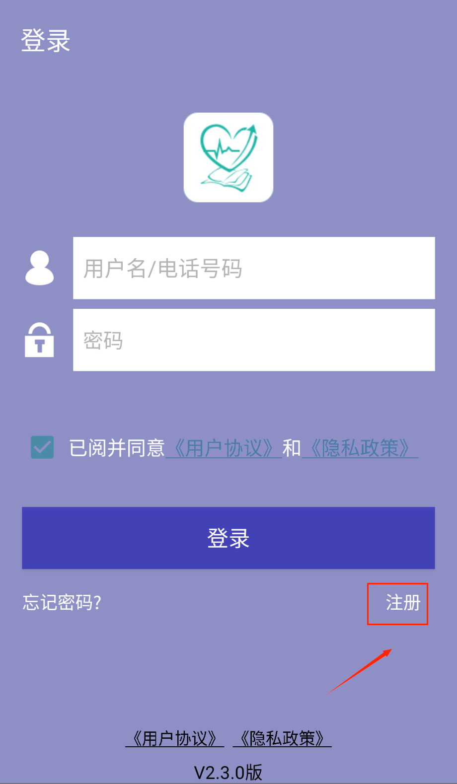 4、新用户点击右下角注册按钮,填写基本信息完成账号创建,记得阅读隐私政策了解数据使用规则呀。