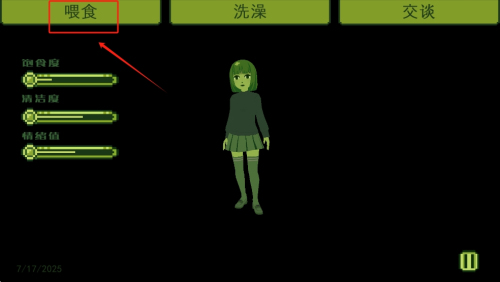 3、管理角色状态:在游戏中,通过点击不同的选项如“喂食”来管理角色的各种状态。