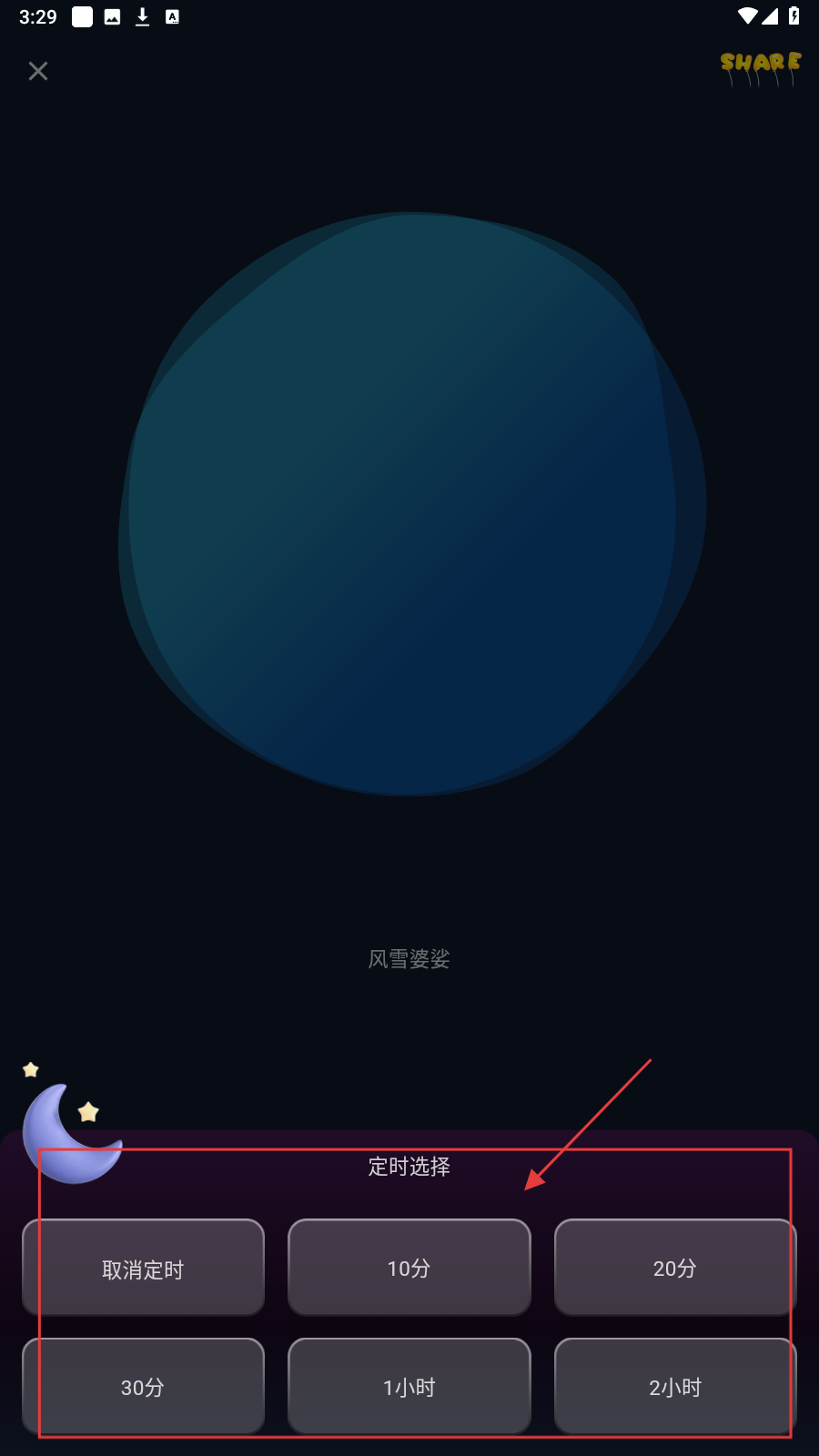 4、点击定时按钮,在定时选择弹窗中,可选择取消定时、10分、20分等不同时长的定时选项。