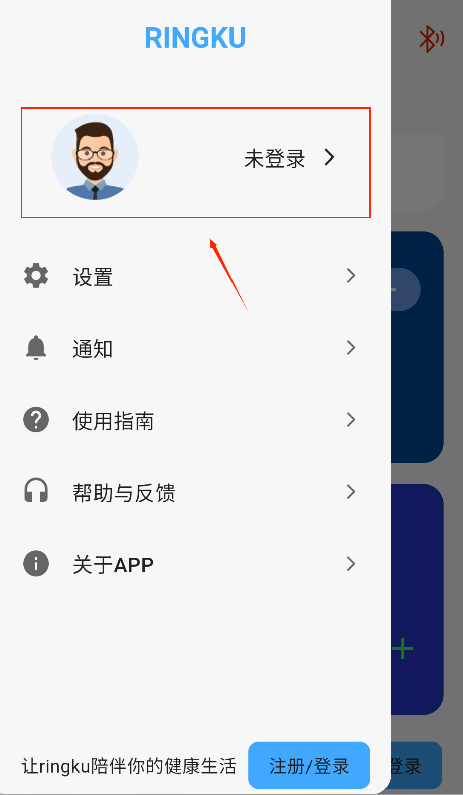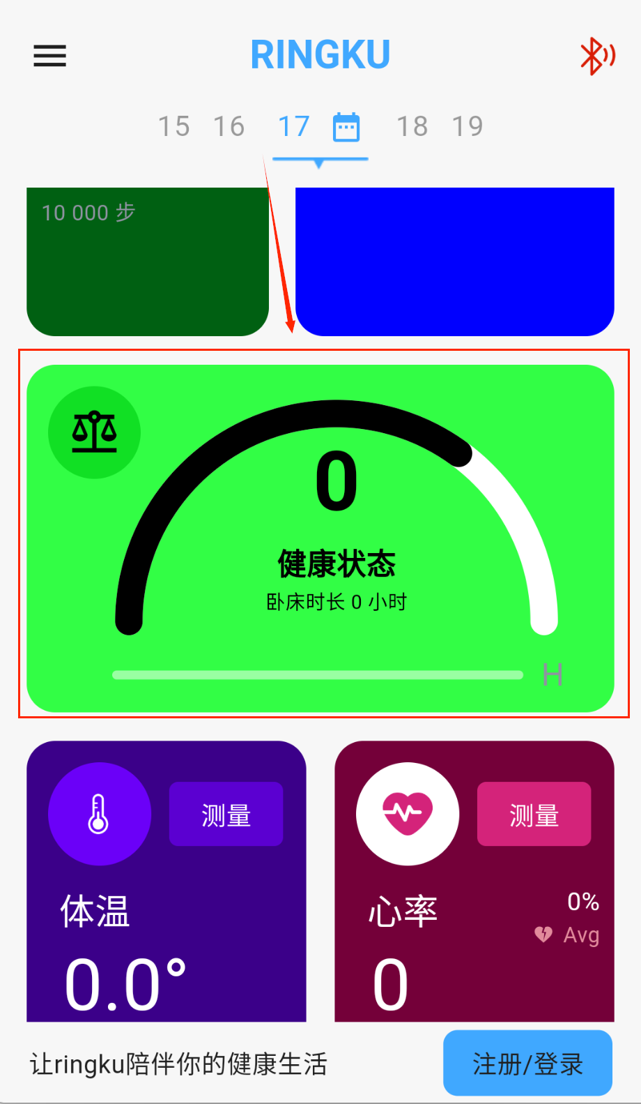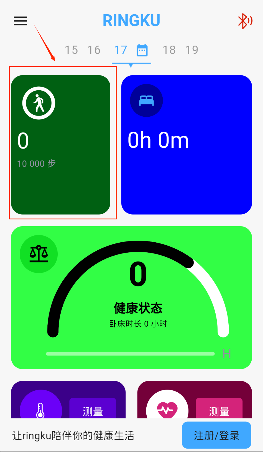 1、打开APP进入设备绑定页面,开启蓝牙连接智能戒指,完成配对后即可同步健康数据哦。