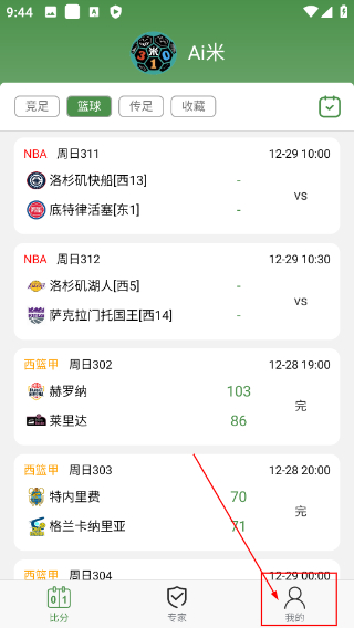 1、在赛事信息页面点击底部的【我的】选项,进入个人中心页面。