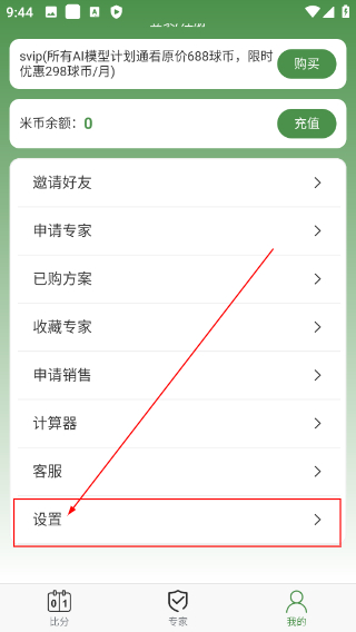 2、在个人中心页面找到并点击【设置】选项,进入应用的设置界面,准备进行功能相关配置。