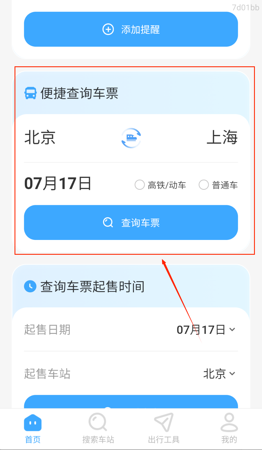 1、查询页输入出发地和目的地,设置出行日期范围,筛选"特惠票"选项查看优惠车次哦。